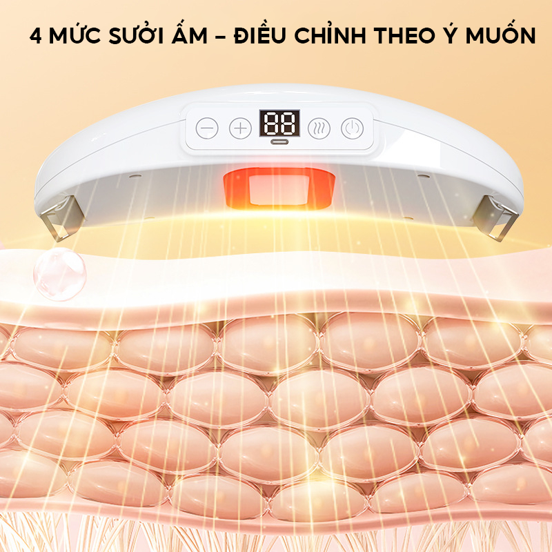 Bật chức năng sưởi ấm, chọn mức nhiệt từ 35°C đến 60°C tùy theo sở thích và cảm giác cơ thể.
