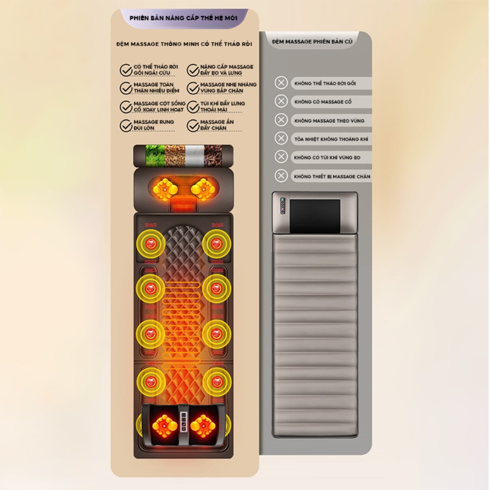 Đệm massage toàn thân công nghệ hiện đại, giảm căng cơ, kích thích tuần hoàn máu