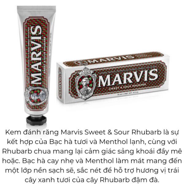 - Marvis Cinnamon Mint (Màu đỏ): Hương bạc hà và quế cay nồng, chuyên khử mùi sau khi ăn nhưng thực phẩm có mùi nặng như mắm, hải sản.