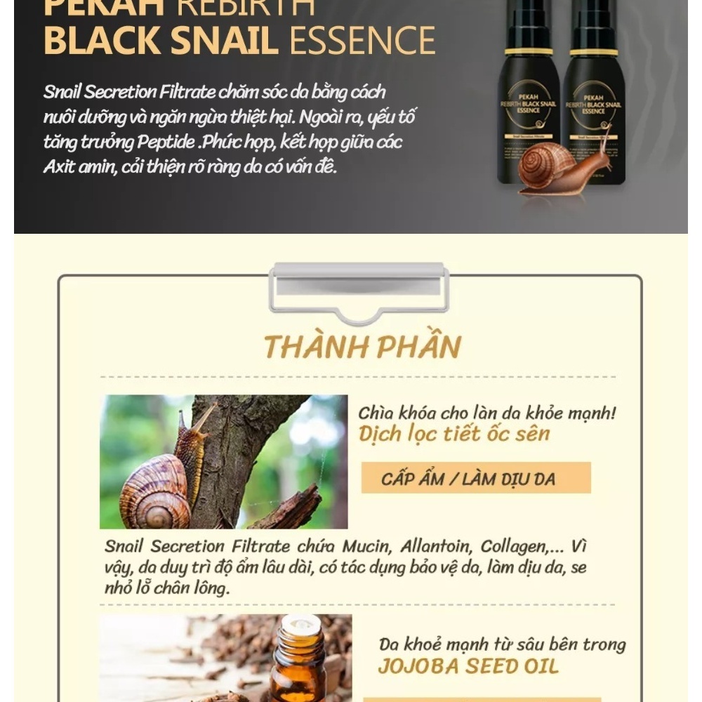 Serum Dưỡng Ẩm Chống Lão Hóa Giảm Nếp Nhăn Ốc Sên PEKAH Rebirth Black Snail Essence