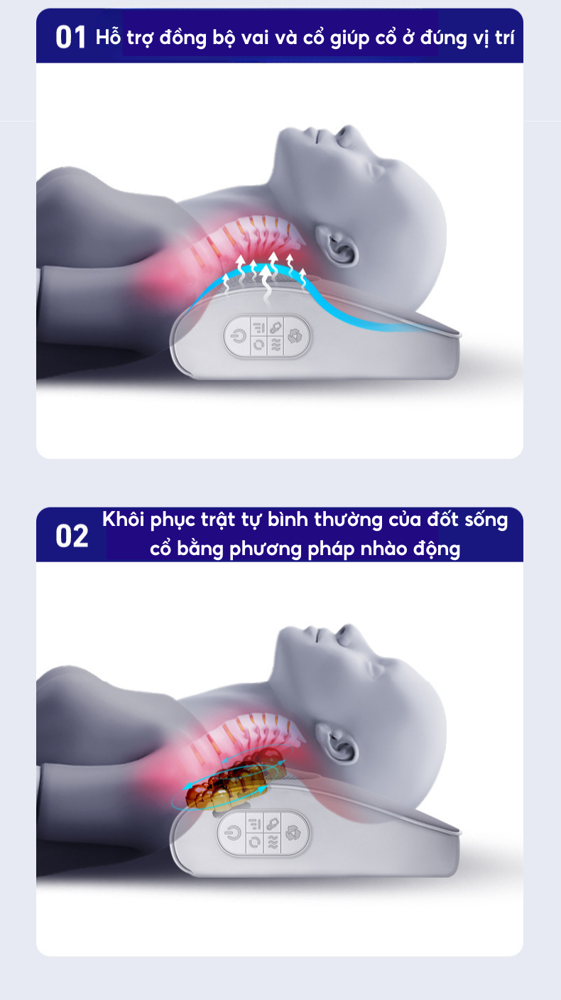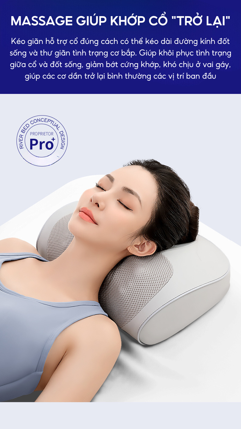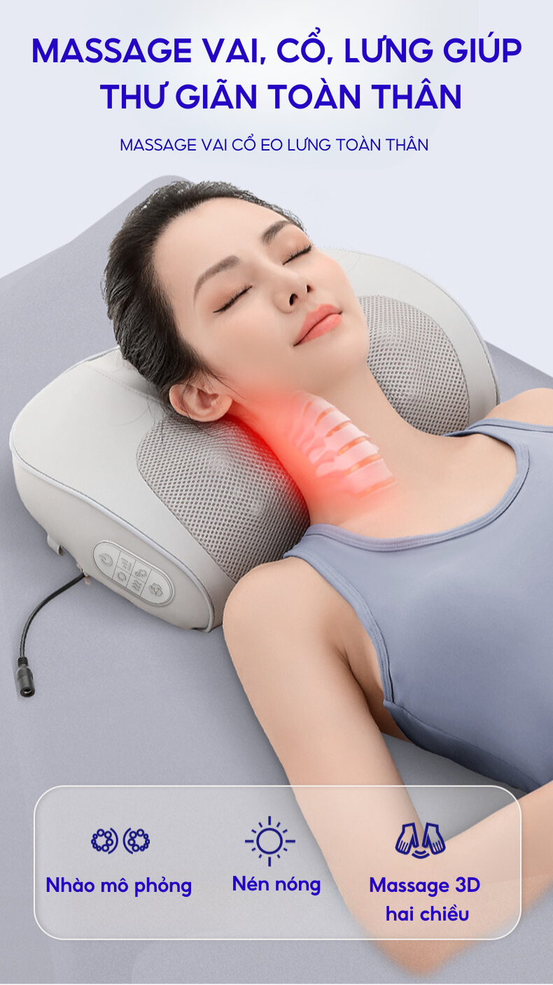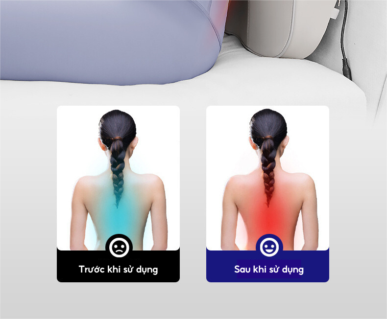 - Tính năng làm nóng bằng nhiệt hồng ngoại cải thiện khả năng trao đổi chất giữa các tế bào, tăng khả năng nuôi dưỡng lưu thông tuần hoàn máu, hỗ trợ giảm đau mỏi cổ vai gáy và đem lại giấc ngủ ngon.