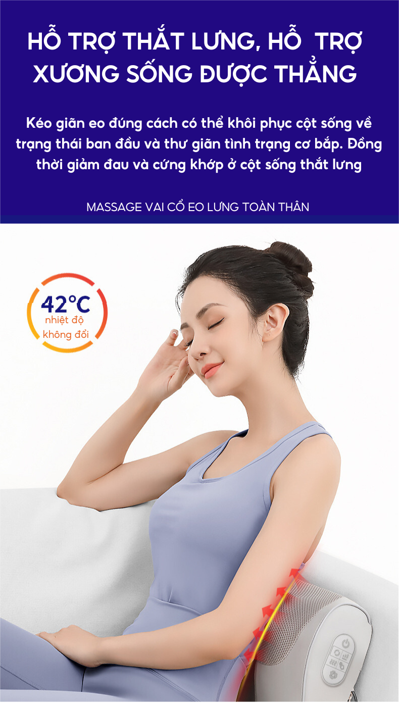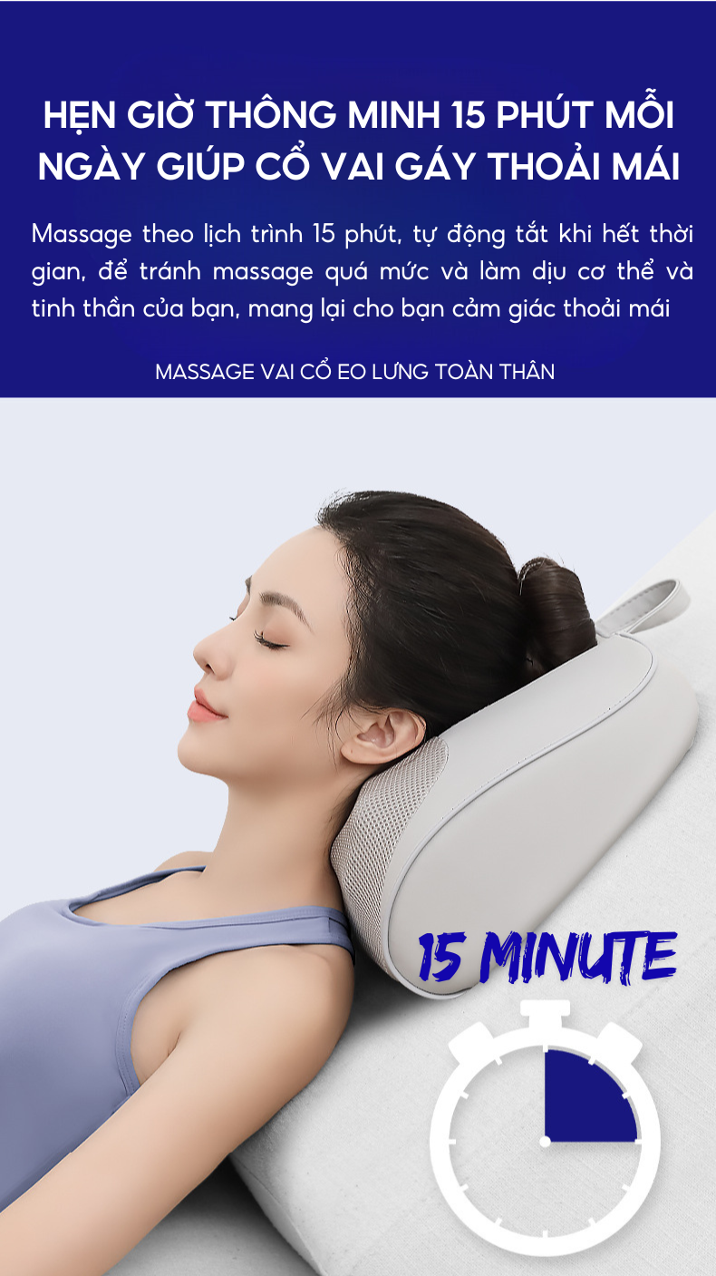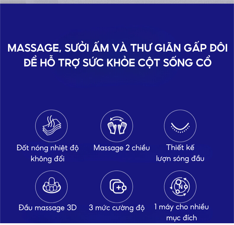 - Tính năng làm nóng bằng nhiệt hồng ngoại cải thiện khả năng trao đổi chất giữa các tế bào, tăng khả năng nuôi dưỡng lưu thông tuần hoàn máu, hỗ trợ giảm đau mỏi cổ vai gáy và đem lại giấc ngủ ngon.