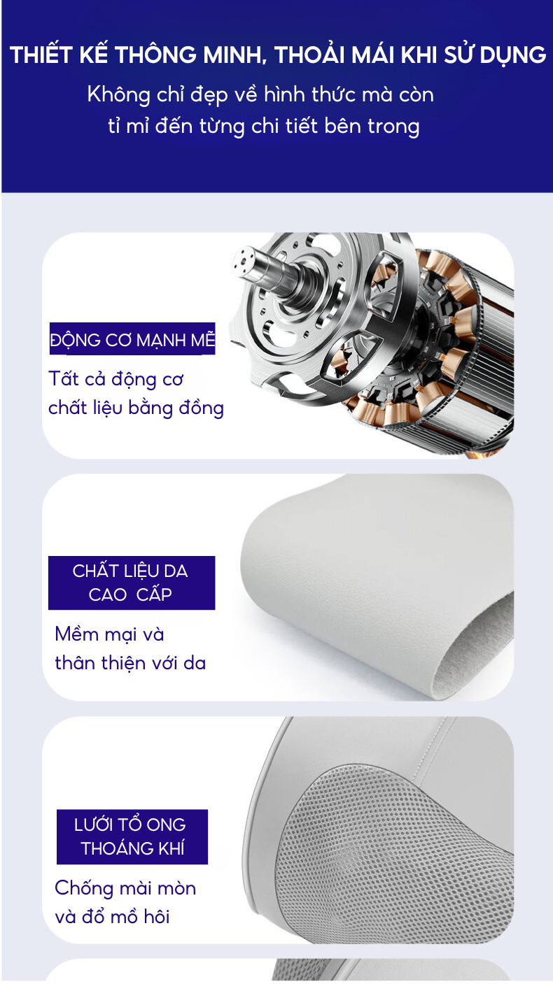 - Các viên bi thiết kế 3D được trang bị trong máy chuyển động liên tục, xoay đảo chiều tác động trực tiếp vào các huyệt vị giúp giảm ngay tình trạng căng cứng, đau mỏi ở vùng cổ
