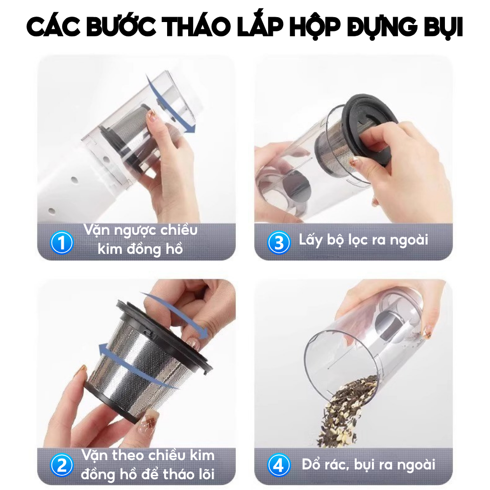 B4: Sau khi sử dụng, đổ bụi và rửa bộ lọc bằng nước sạch, để khô ráo