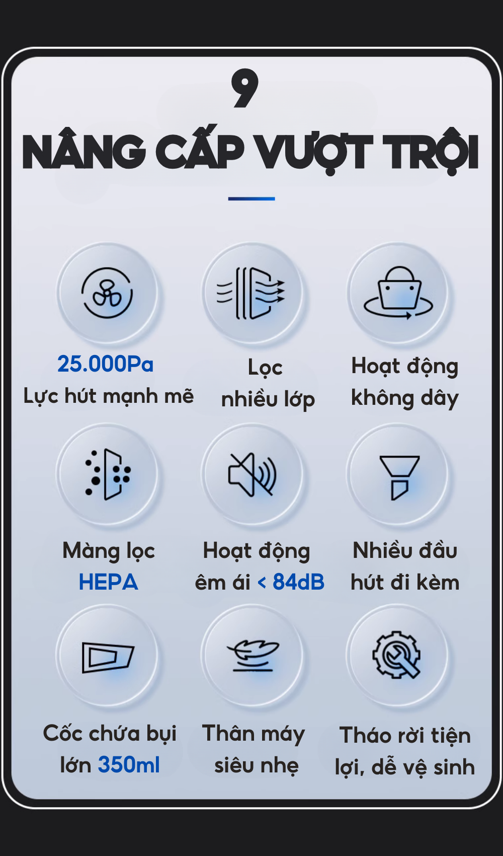 ✅ Bộ lọc HEPA kép – ngăn ngừa phát tán bụi và vi khuẩn trở lại không khí