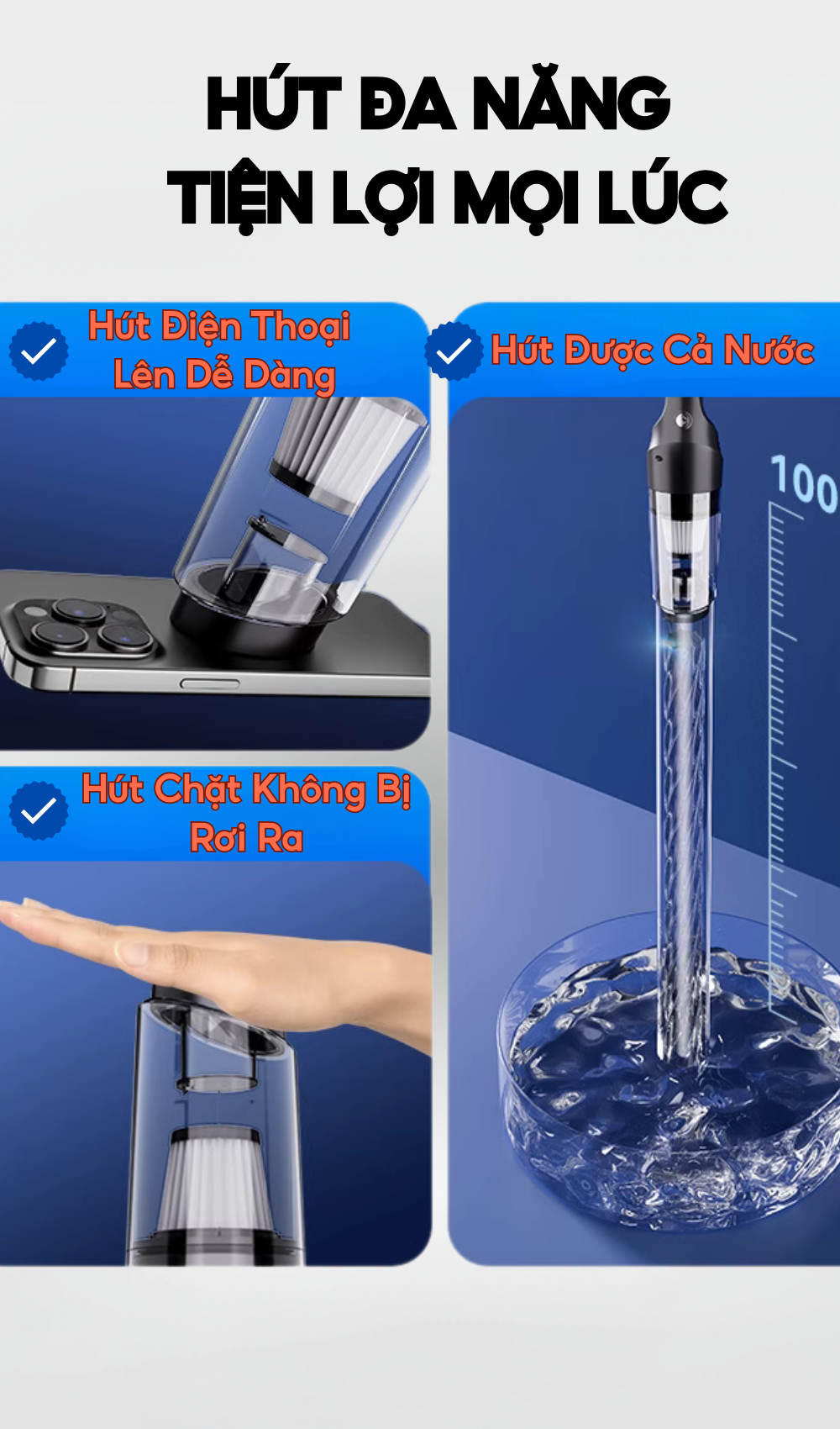 ✅ Lực hút cực mạnh 25.000Pa – hút sạch bụi mịn, tóc, cát và vụn thức ăn