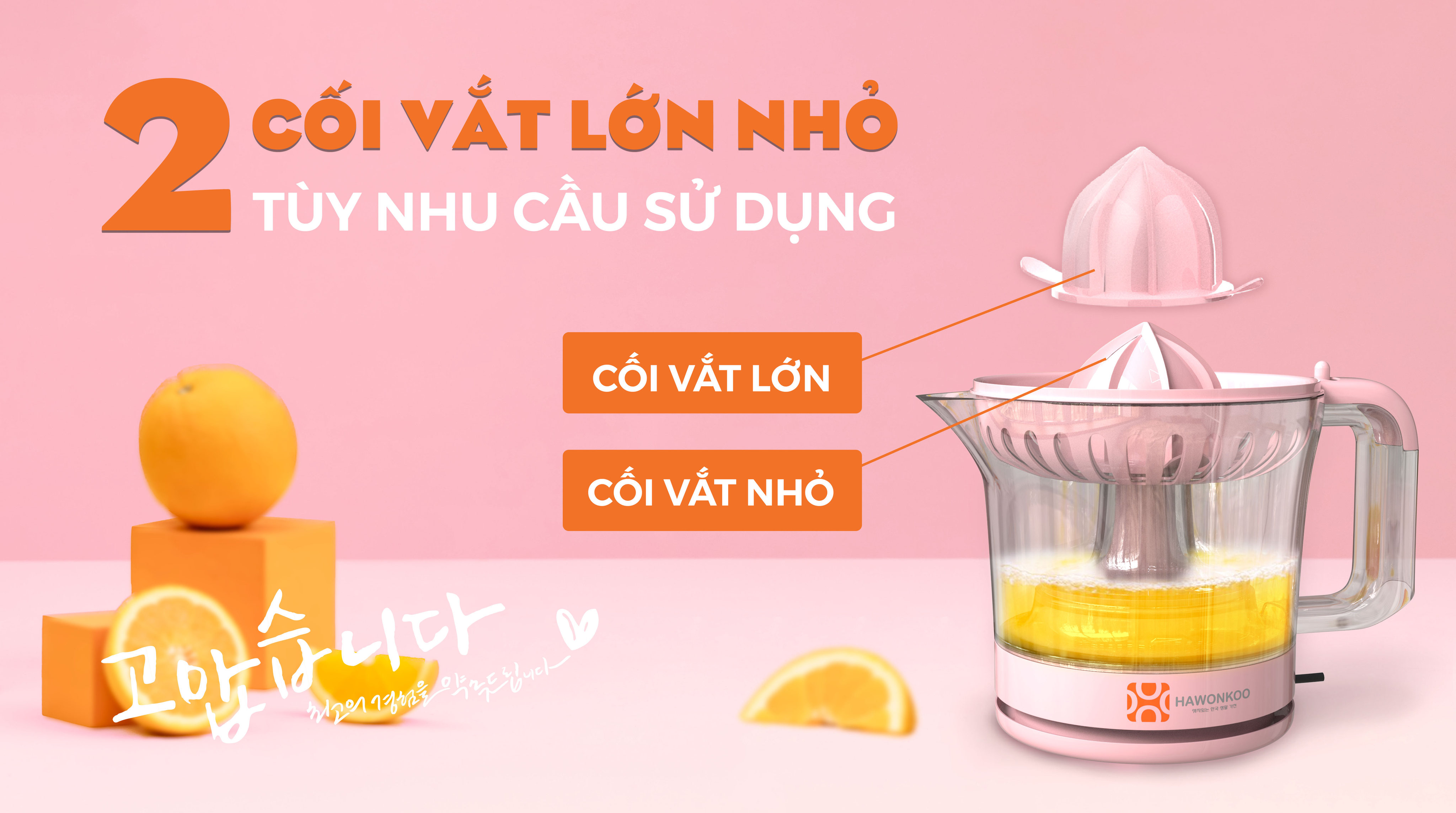 Máy vắt cam Hawonkoo OJH-001 được trang bị 2 cối vắt có kích thước khác nhau sử dụng cho hầu hết các loại quả có múi như cam, quýt, chanh, bưởi … Chiếc máy nhỏ gọn có thể đáp ứng nhu cầu và sở thích của mỗi thành viên trong gia đình, xứng đáng là thiết bị hỗ trợ tuyệt vời trong căn bếp của mỗi gia đình.